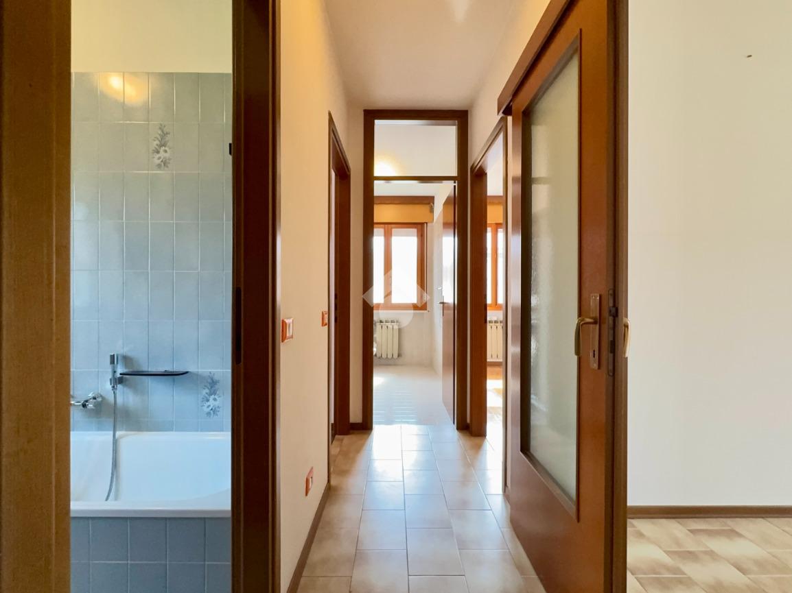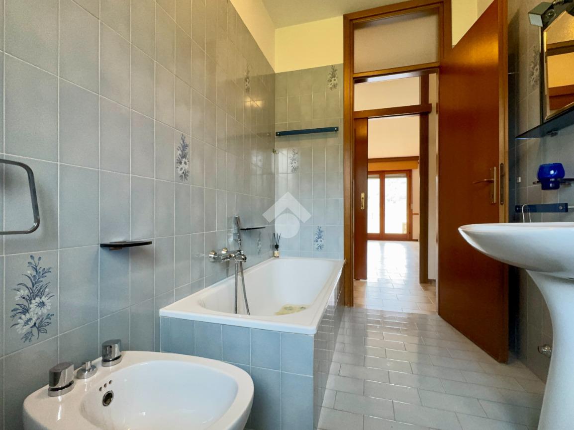 Un comodo disimpegno conduce alla zona notte, composta da tre camere da letto, di cui due matrimoniali, e da due bagni finestrati, uno con vasca e l’altro con doccia, entrambi completamente piastrellati.