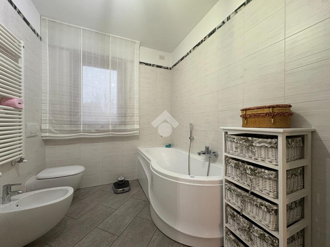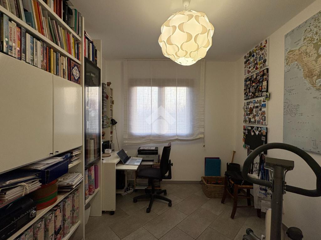 Gli spazi interni sono ben distribuiti e funzionali, con un comodo ripostiglio, due bagni e una zona notte che ospita due ampie camere matrimoniali. Completano la proprietà uno studio e una zona lavanderia, ambienti dai quali è possibile ricavare una terza camera da letto in base alle proprie esigenze. E' presente all'esterno un doppio posto auto coperto e sul retro dell'abitazione un pratico deposito.
