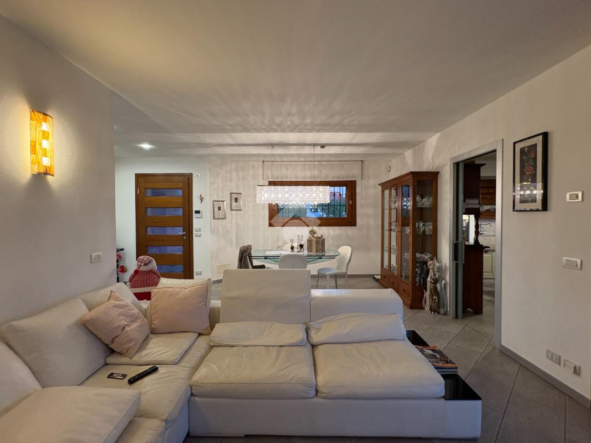 L’ingresso conduce a una luminosa zona giorno composta da sala da pranzo, area salotto e cucina, con accesso diretto al portico esterno, arredato con tavolo e pensato per piacevoli momenti conviviali all’aperto con famiglia e amici.