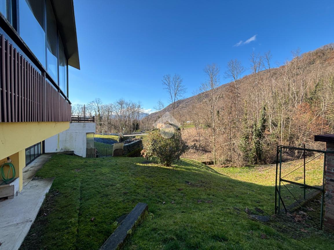 La porzione principale di 223 mq si sviluppa con la zona abitativa interamente su un unico livello, garantendo praticità e comfort. L’ingresso conduce a un ampio e luminoso soggiorno con accesso diretto alla veranda sul retro, uno spazio piacevole e riservato che si affaccia sul giardino di proprietà di circa 1.000 mq, confinante con il torrente Urana.