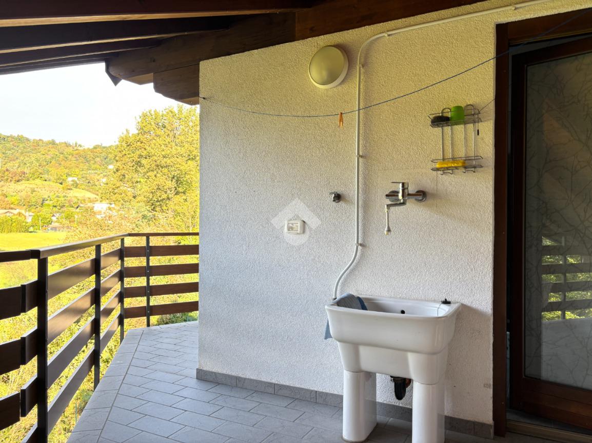 L’abitazione si apre su una luminosa zona giorno open space, arricchita da una terrazza esposta al sole che illumina l’intero living, un comodo ripostiglio all’ingresso e un bagno finestrato con vasca e balcone.