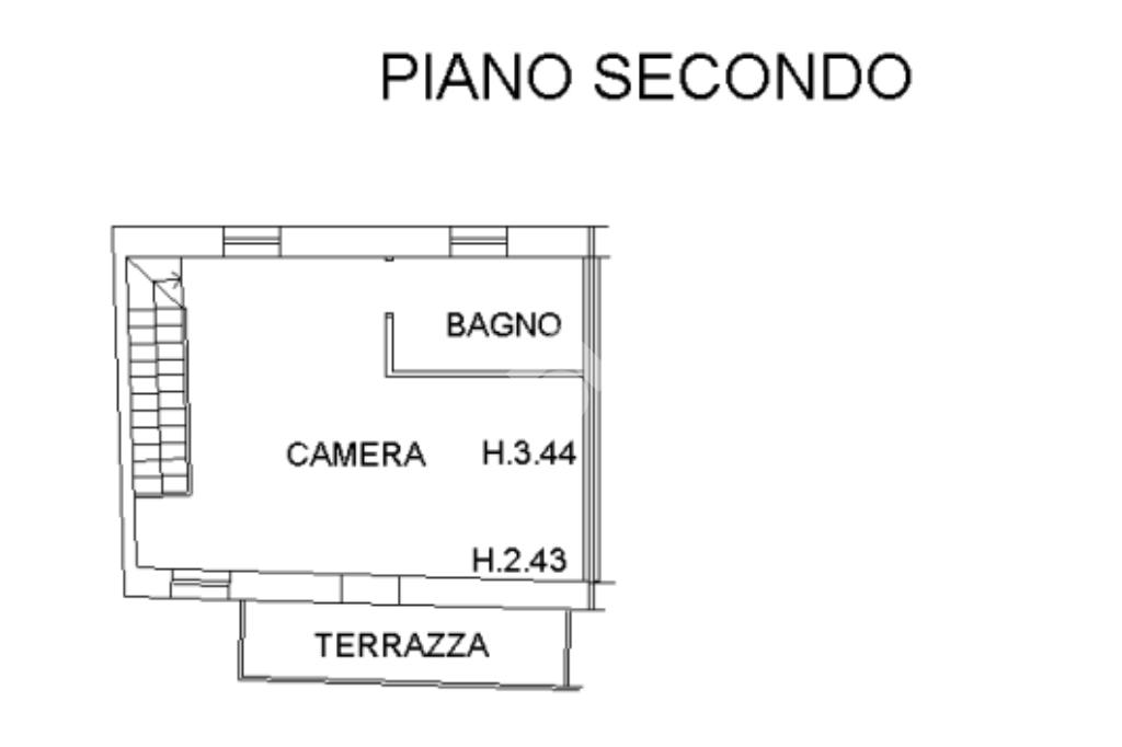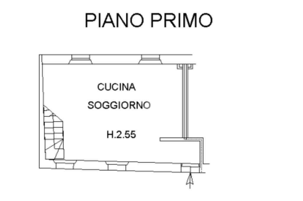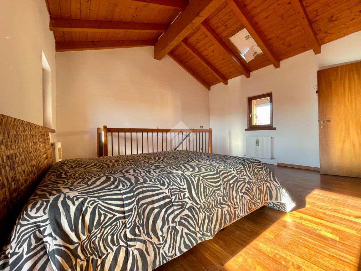 Al piano superiore, collegato da scala interna, si trova la zona notte composta da una luminosa camera matrimoniale con soffitti alti e travi a vista, con accesso alla terrazza. Completa il livello un bagno finestrato con box doccia.