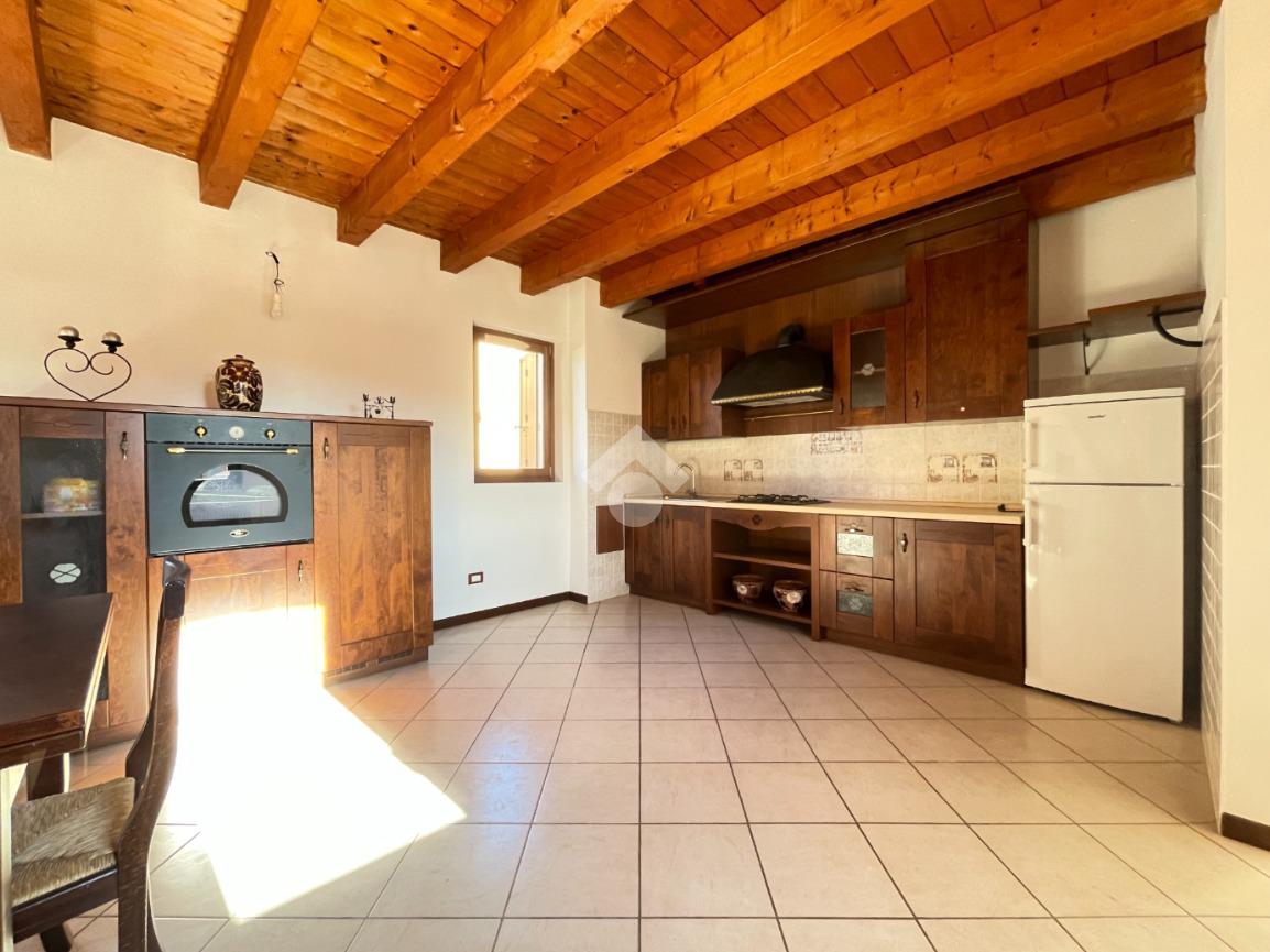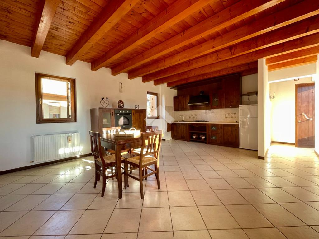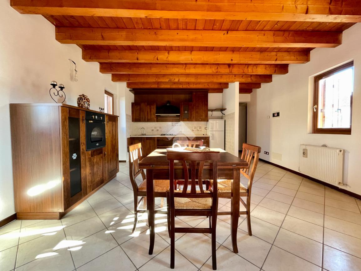 L’ingresso conduce a una piacevole zona giorno open space, ampia e ben illuminata, con travi a vista e altezze importanti.